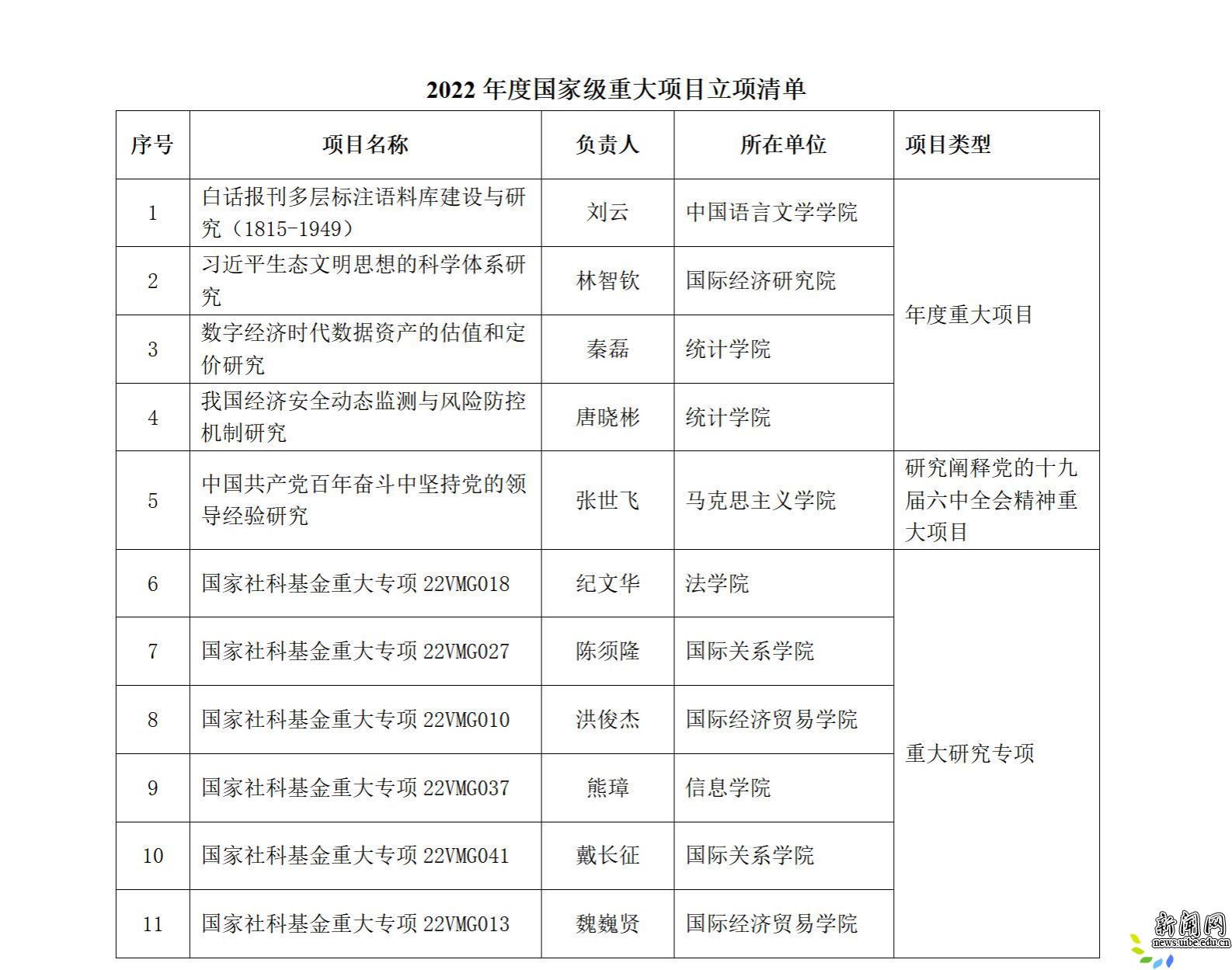 此前,我校还获批研究阐释党的十九届六中全会精神国家社科基金重大项目1项、国家社科基金重大专项6项。至此,2022年我校共获批国家社会科学基金重大项目11项,与去年取得的历史最高记录持平。